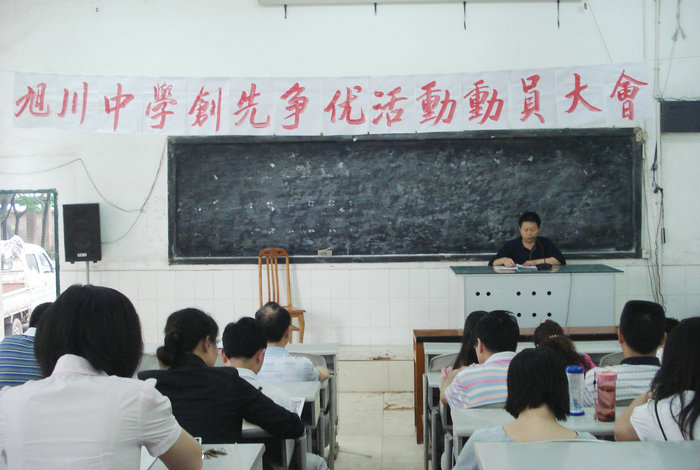 6月24日下午,旭川中学党总支在阶梯教室召开深入开展创先争优活动动员部署大会。学校党总支书记、学校深入开展创先争优活动领导小组组长李维庆作动员讲话。学校校长李维东、学校党总支深入开展创先争优活动领导小组成员、各支部书记及全体党员参加了会议。