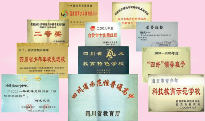 省重点中学(省示范性普通高中)、省校风示范学校、省实验教学示范学校、省艺术教育特色学校、省体育传统项目学校、省艺术教育先进单位、省体育先进学校、省中小学校园文化建设展评特色学校、全国体育传统项目先进单位、全国群体活动先进单位、国家级青少年体育俱乐部、“全国中学生水科技发明比赛暨斯德哥尔摩青少年水奖中国地区选拔赛”项目试点学校,是自贡市文明单位、市绿色学校、市园林式单位、市德育教育先进单位、市爱国卫生先进单位、市“中国数字科技馆观测点”优秀示范学校、市常规管理优秀级学校,是西南师范大学、西华师范大学教育科研基地、四川师范大学基地教育课程研究中心课程研发与教学示范基地。