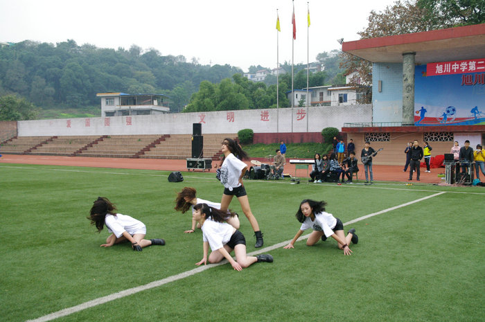 2013年11月26 日下午四点,旭川中学运动场上开展了一场精彩纷呈声势火暴的学生社团活动汇报演出。这次活动所有节目均由学生自己编排、自己排练、自行组织,充分展示了学生自主发展的自觉性和创造性。节目丰富多彩演员情绪饱满投入,所有学生观众热情响应互动,全场不时响起雷鸣般的掌声和欢呼声。