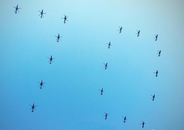 此前曾有报道指出,解放军陆军航空兵的WZ-10与WZ-19武装直升机曾经在保定上空演练“70”字样的飞行编队,可能是为阅兵做准备。